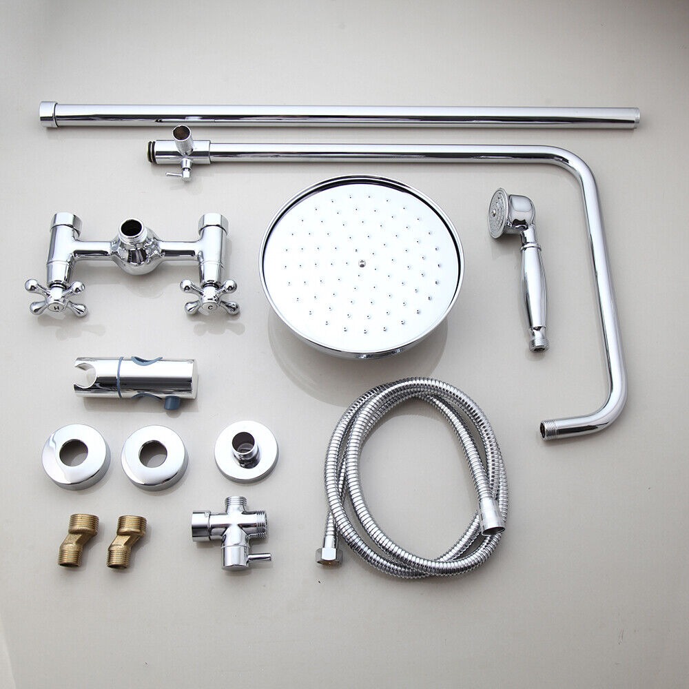 • Hoogte van de nostalgische chroom doucheset:  1250 MM (Deze is in te korten tot +/- 900 MM door de bovenste pijp in de onderste pijp te drukken.)